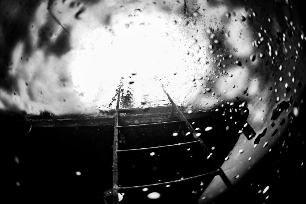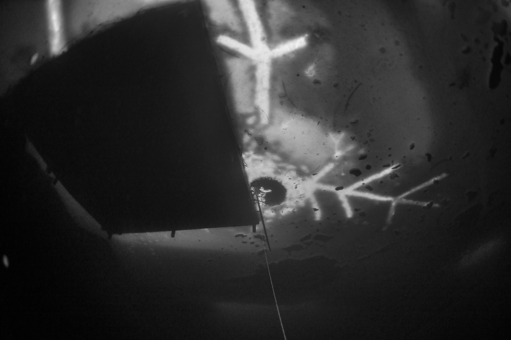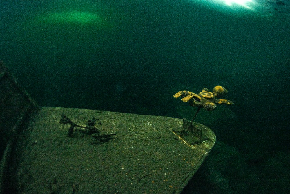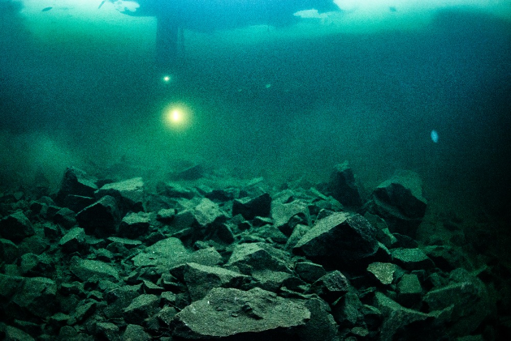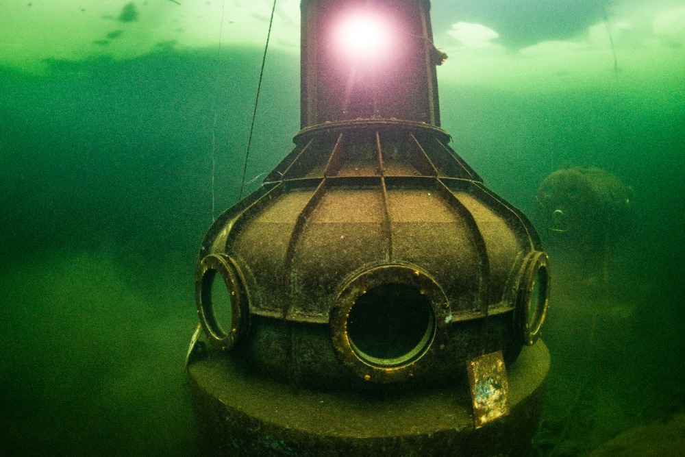 Nad kabinou je kus volného prostoru bez ledu, což zvyšuje bezpečnost ponoru. Bylo to fajn.