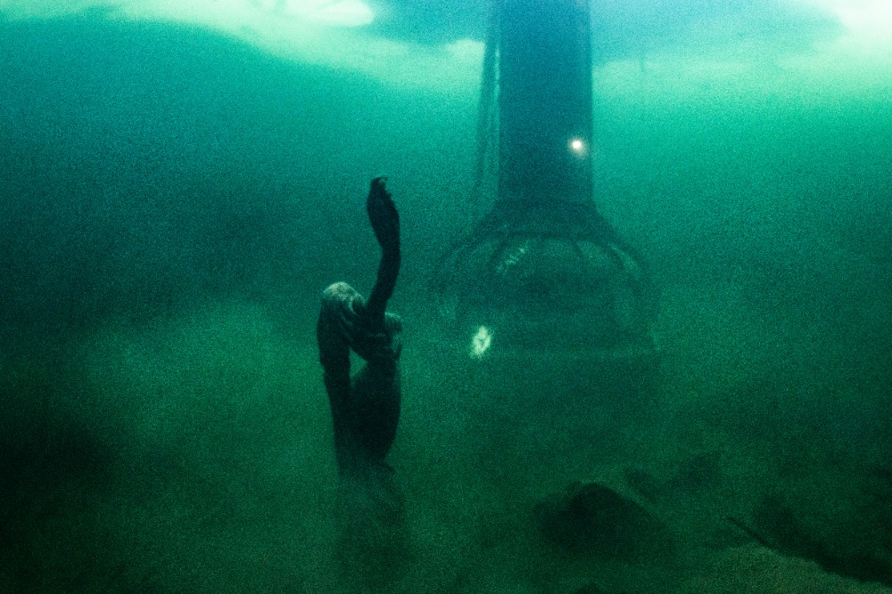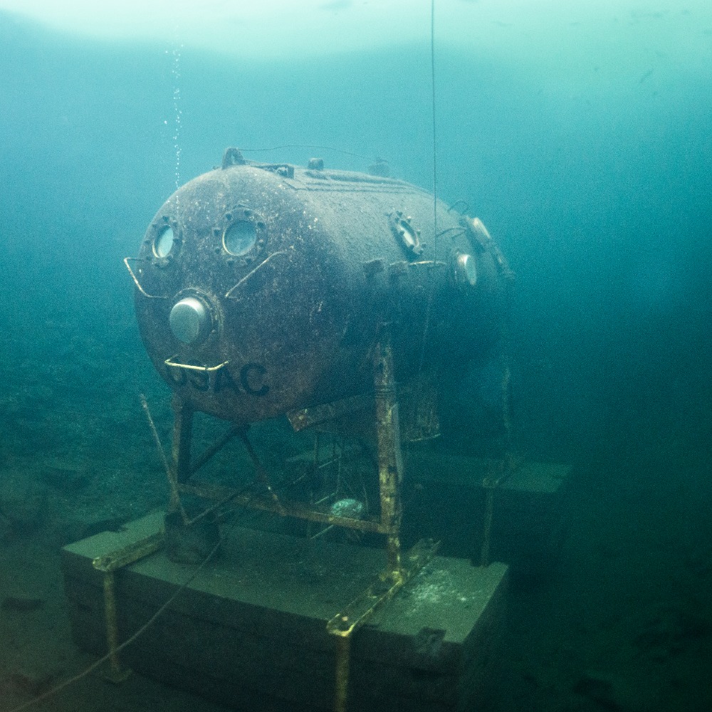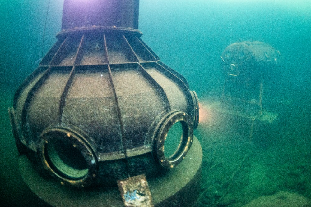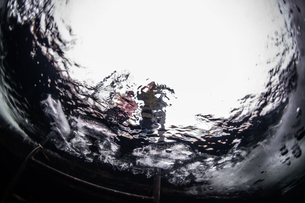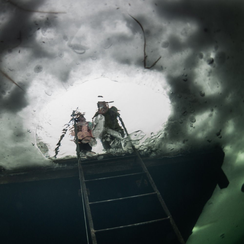 Nad kabinou je kus volného prostoru bez ledu, což zvyšuje bezpečnost ponoru. Bylo to fajn.