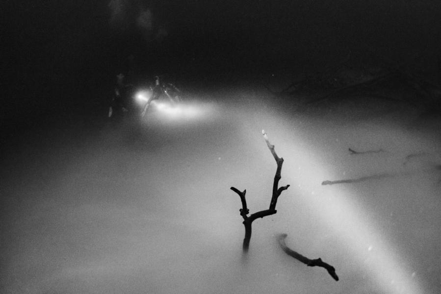 V Anjelitě je zajímavý úkaz. V místě mísení sladké a slané vody cca 30 m hluboko se místo klasické halokliny drží vrstva bohatá na sirovodík. Jak já to vidím, sirovodík, který vzniká rozkladem lupení napadaného do cenotu zreaguje s vodou, protože kyselina sirovodíková je lehčí než slaná voda nastoupá pod vrstvu sladké vody, která lehčí než slaná voda a výše zmíněná kyselina. Tak místo typicke halokliny vznikne ta vrstva bohatá na výše zmíněnou kyselinu. No popisu fotogalerie to asi moc nepomohlo, ale obecně jsem to popsal snad celkem srozumitelně. Náš oddílový chemik mi tam sice ještě cpal iontovou a kovalentní vazbu a mrmlal si něco o difůzi, ale takhle to snad postačí ![]()